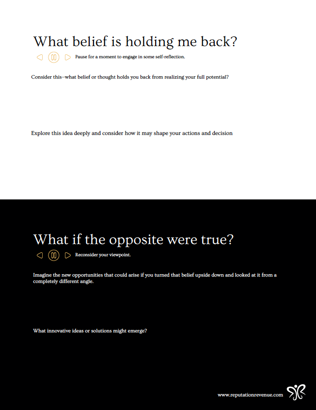 • Two powerful questions designed to challenge your thinking and spark growth.